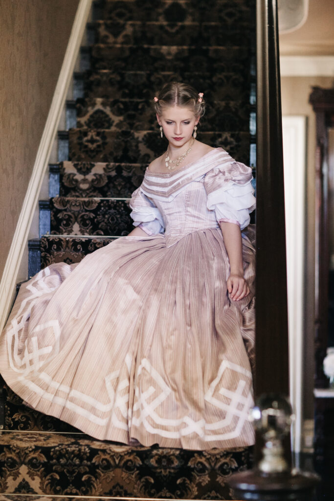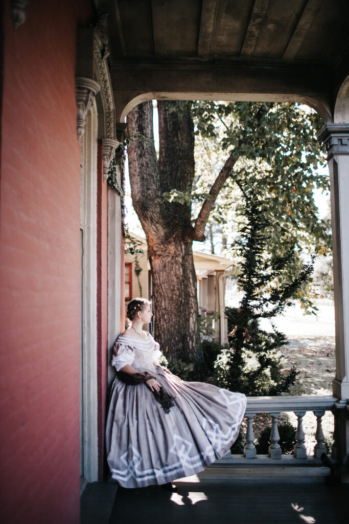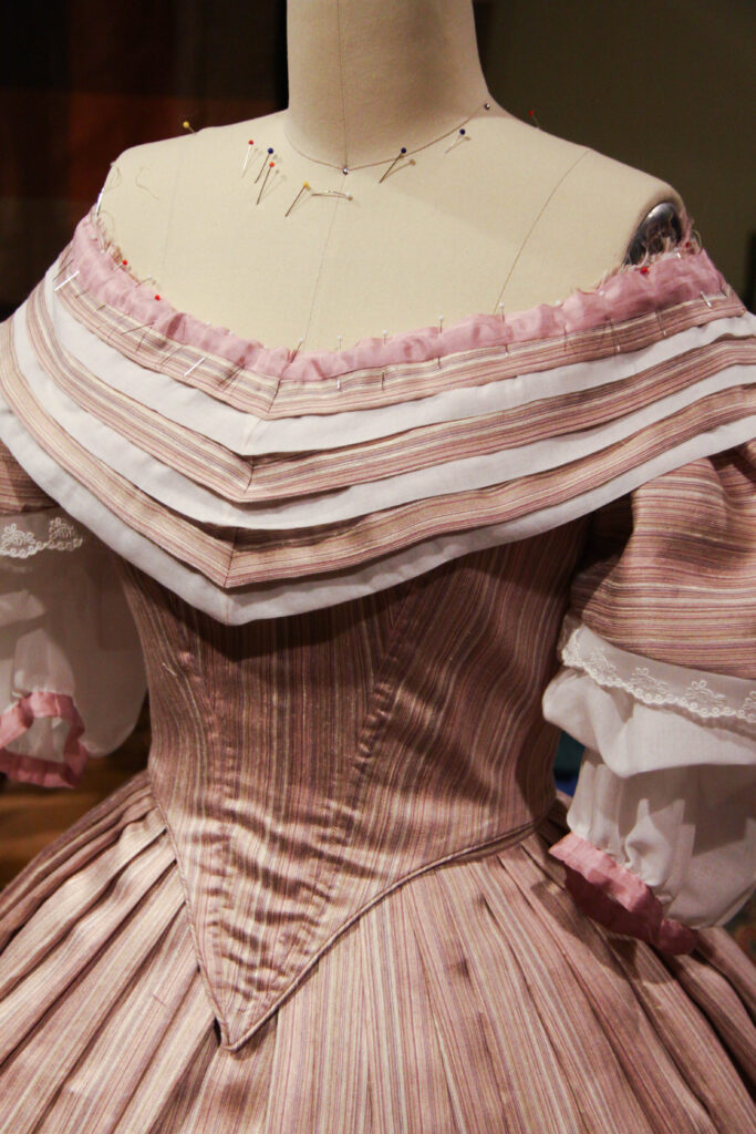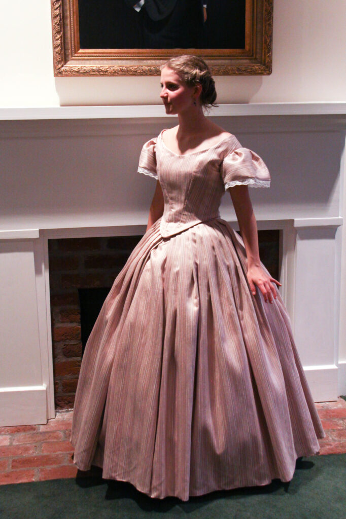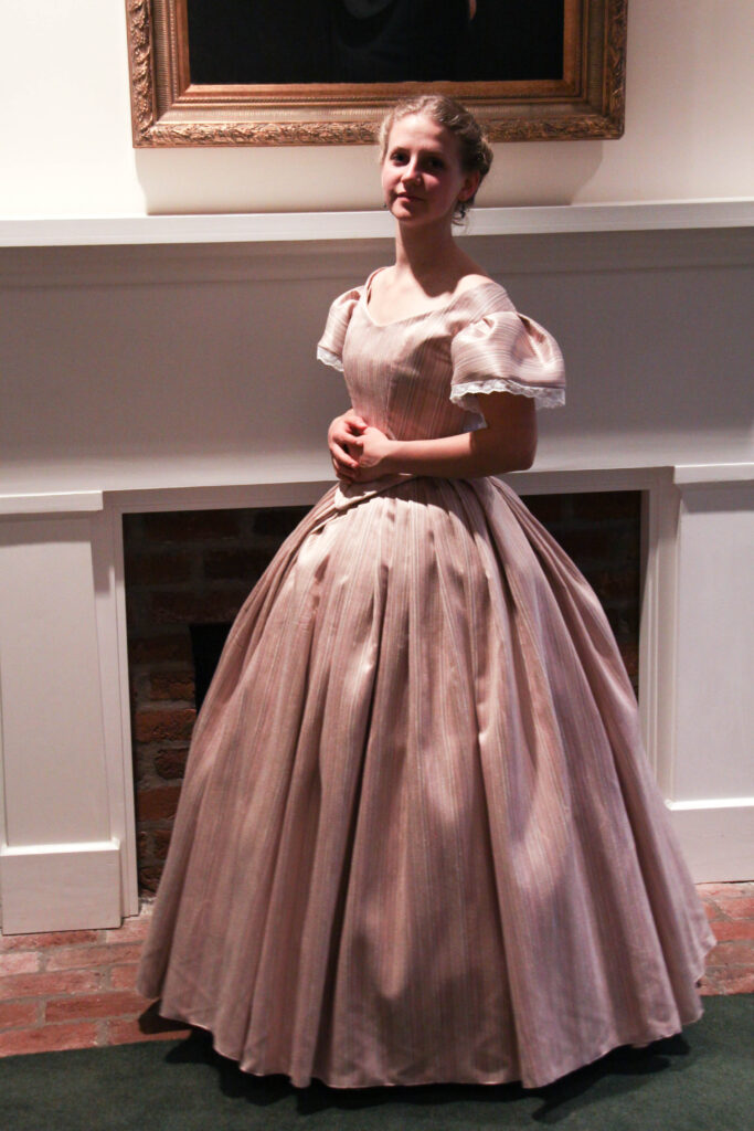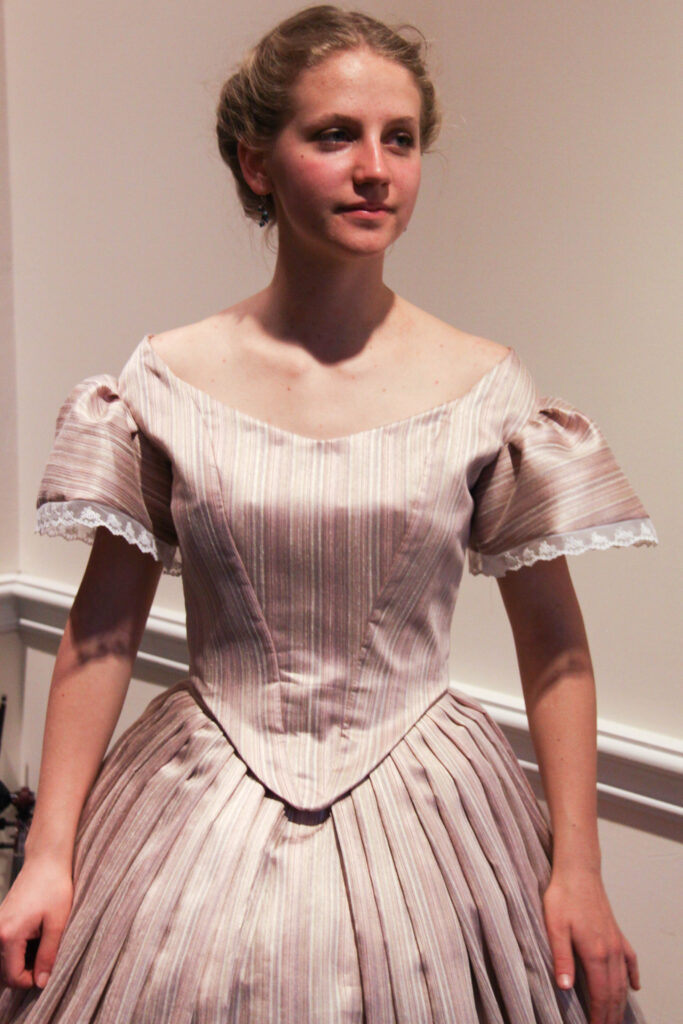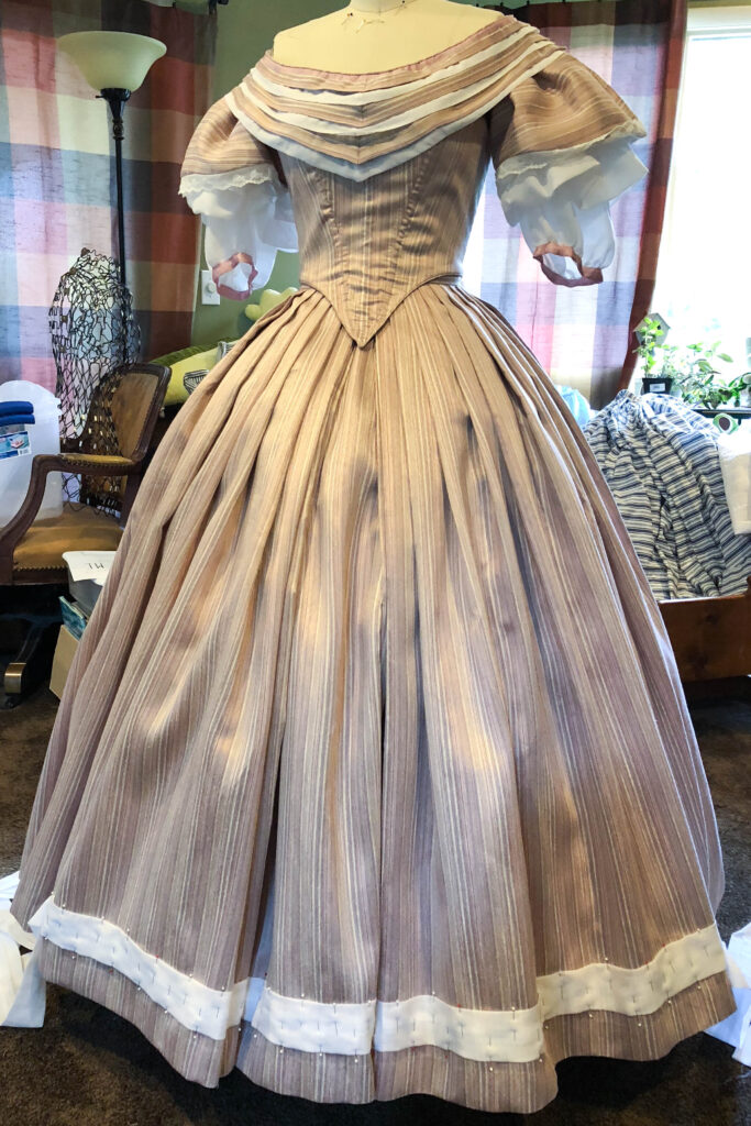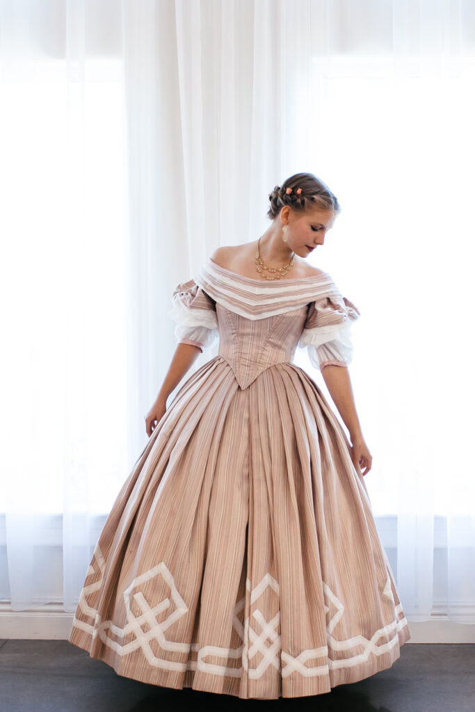 And there you have it! The process of my 1860’s Ballgown; from a quick decision, to a perfect fitting pattern, to hand-sewing trim along the way to California!