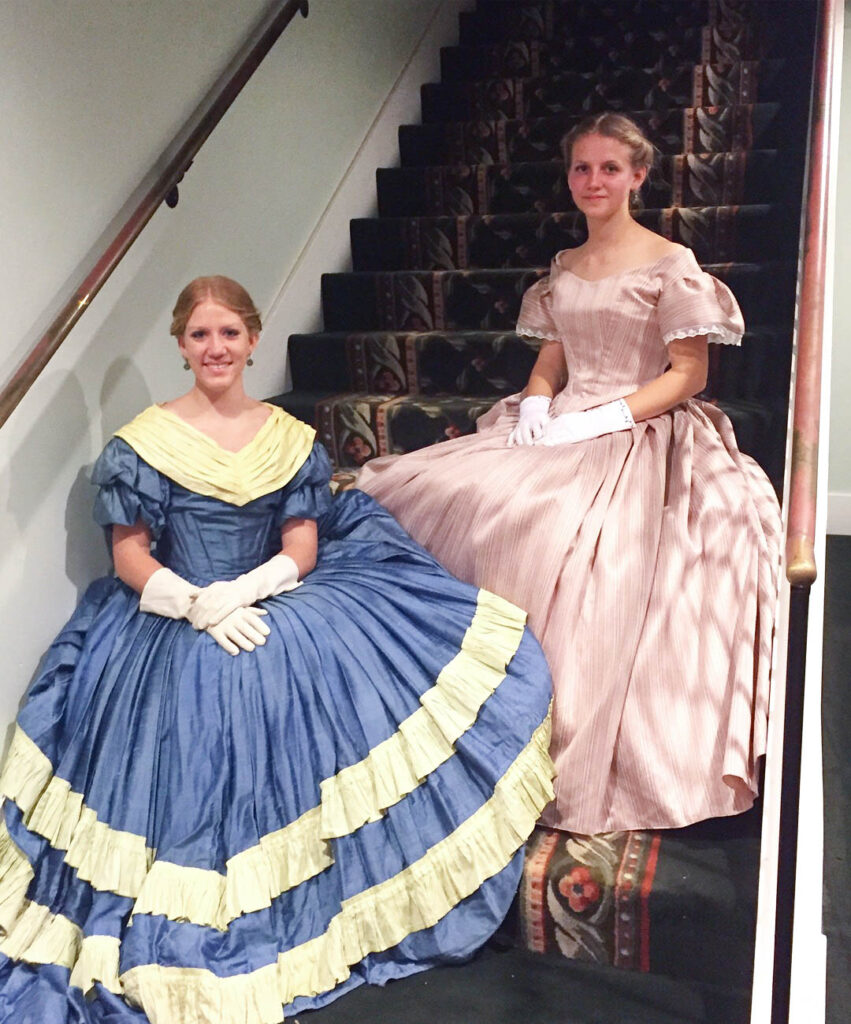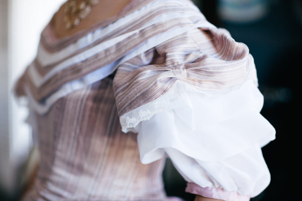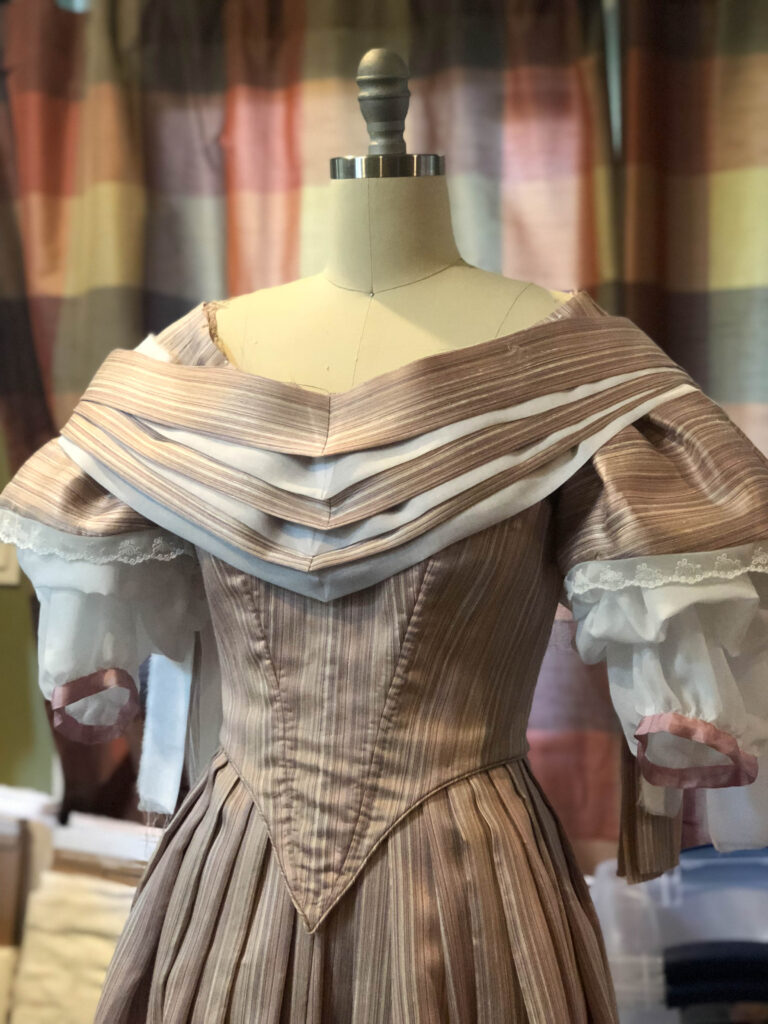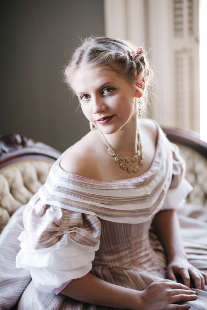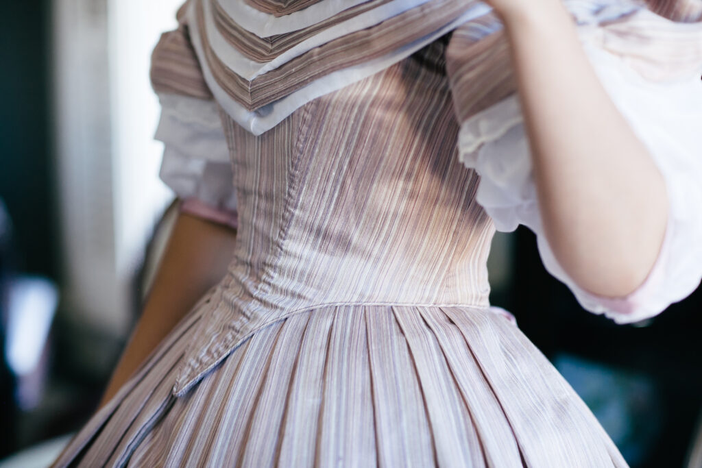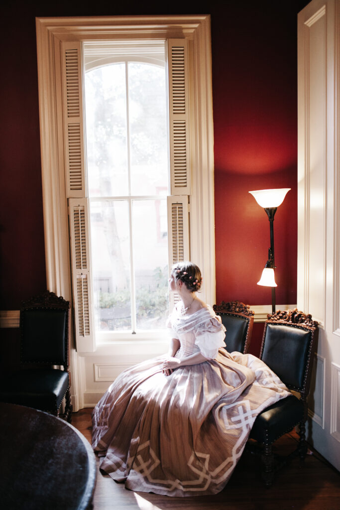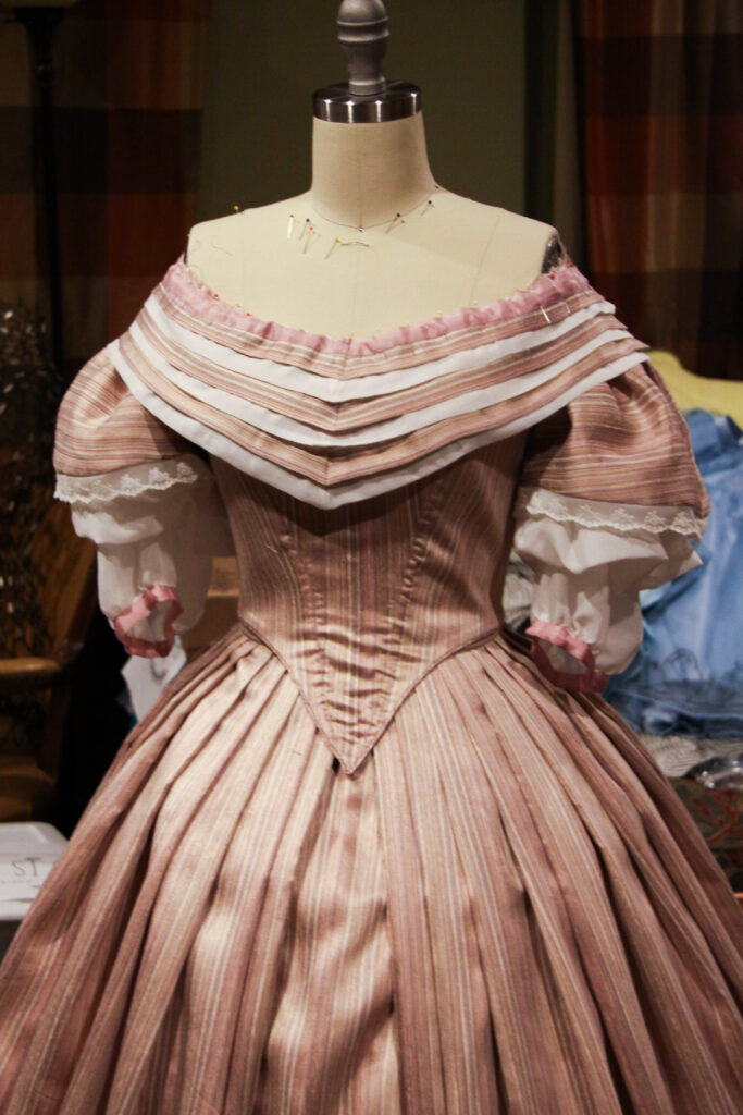 And there you have it! The process of my 1860’s Ballgown; from a quick decision, to a perfect fitting pattern, to hand-sewing trim along the way to California!
