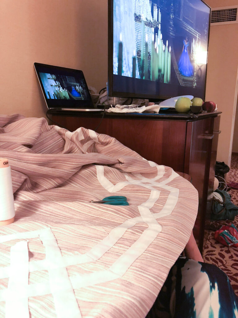 Thus, the evenings of Costume College were spent finishing up the very time consuming trim. (This might have included watching some movies…including Cinderella — It’s my fav!)