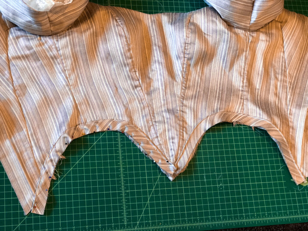 First, I finished up the bodice which included hand-sewing the eyelets.
